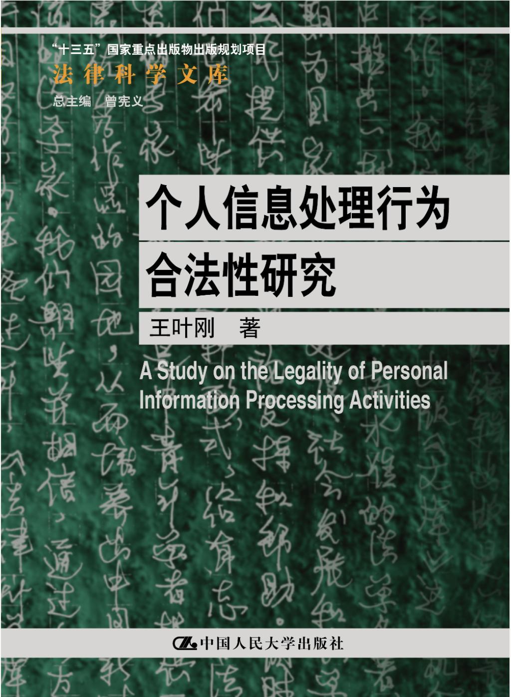 今年7月,9428cn太阳集团古天乐王叶刚副教授的《个人信息处理行为合法性研究》一书由中国人民大学出版社出版,本书入选“十三五”国家重点出版物出版规划项目“法律科学文库”系列丛书。