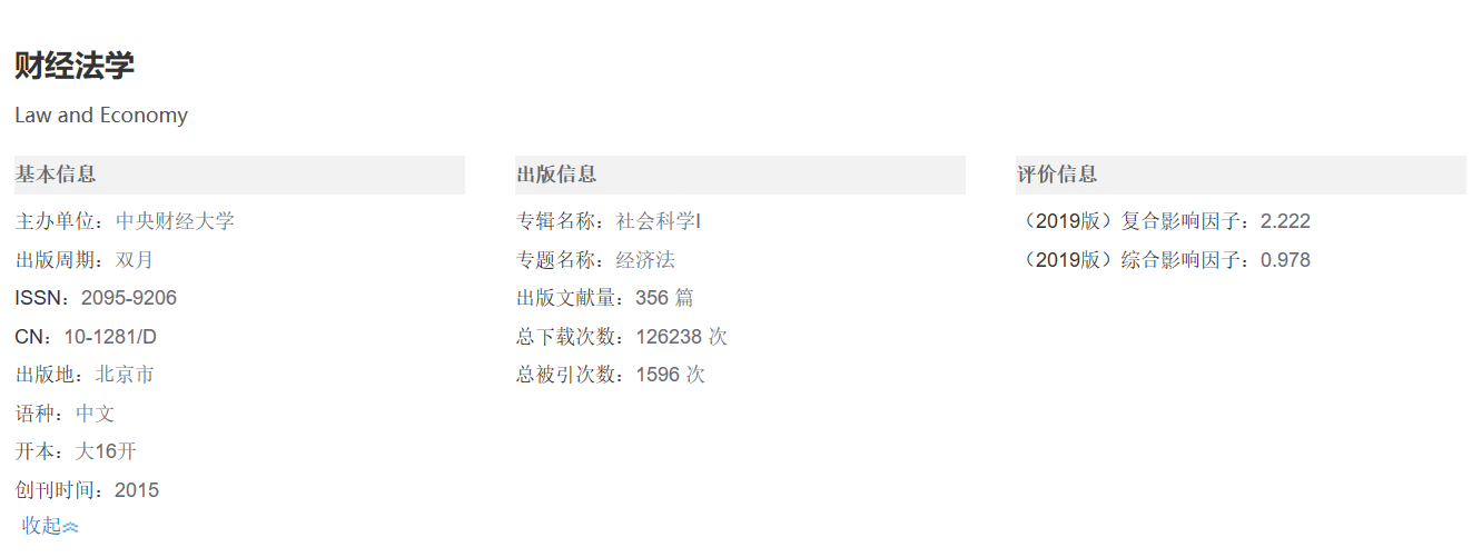 目前,CSSCI法学类期刊24种,CSSCI法学类扩展版期刊13种。《财经法学》自2015年创刊以来,五年即取得上述成绩,实属不易。这是广大作者、读者和期刊界同仁大力支持的结果。相信《财经法学》在未来一定会取得更好的成绩。