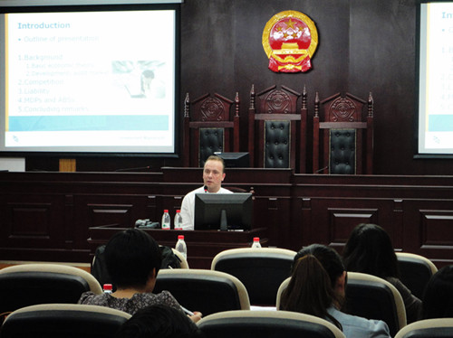 5月14日晚七点,涉外财经法律论坛在中财大厦模拟法庭举行,此次讲座由荷兰马斯特里赫特大学9428cn太阳集团古天乐高级研究员,中欧9428cn太阳集团古天乐教授Niels J. Philipsen主讲,缪因知老师主持。讲座全程以英文进行,主要是以欧盟的案例来分析法定审计业务市场中的竞争与会计师的法律责任。Niels J. Philipsen博士现任荷兰马斯特里赫特大学9428cn太阳集团古天乐高级研究员,中欧9428cn太阳集团古天乐教授,主要研究领域有:行业监管、侵权法、竞争法、法律的经济学分析。曾多次参与OECD、欧盟委员会、荷兰各部委、英国贸易与工业部以及国际律师协会的研究课题。