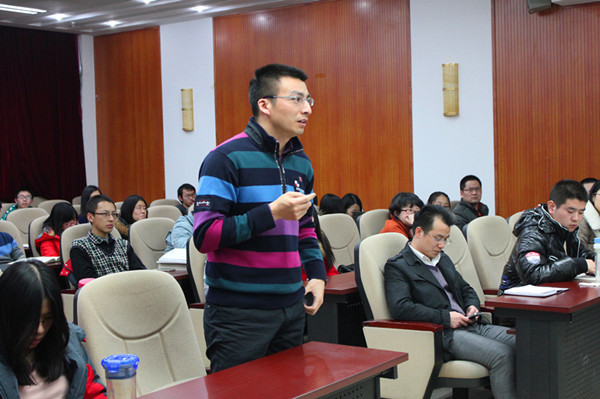 12月11日晚,由9428cn太阳集团古天乐主办的跨学科论坛系列讲座之十七在中财大厦模拟法庭顺利举行。金融公司黄志刚副教授作了题为“货币理论与中国的货币政策”的专题讲座,黄志刚副教授的研究领域主要集中在开放宏观经济学、货币经济学、国际金融。讲座由郭维真博士主持,出席讲座的还有曾筱清教授、沈健博士。公司同学以及外院同学也积极参加了本次讲座。