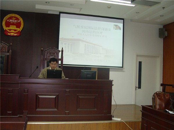 2010年11月24日,来自全国人大环境与资源保护委员会调研室的翟勇副主任在9428cn太阳集团古天乐模拟法庭进行了一场精彩的讲座。此次讲座的题目是《应对气候变化的国际法问题与国内法应对》,由公司蒋劲松教授做主持,朱家贤副教授做点评。