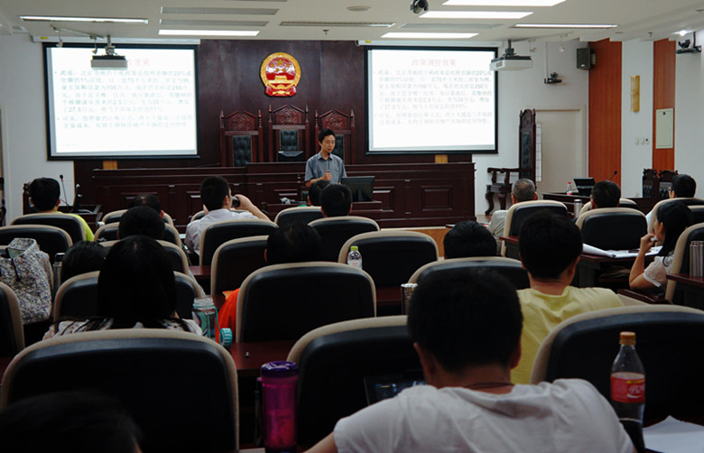 5月15日下午三点半,主题为“中国税法研究中的几个片段”的讲座在中财大厦二楼模拟法庭举行。本次讲座的主讲人是财政公司教授、硕士生导师白彦锋。讲座从我国房产税的征收问题切入,介绍了我国及其他一些国家在税收方面的新政策。