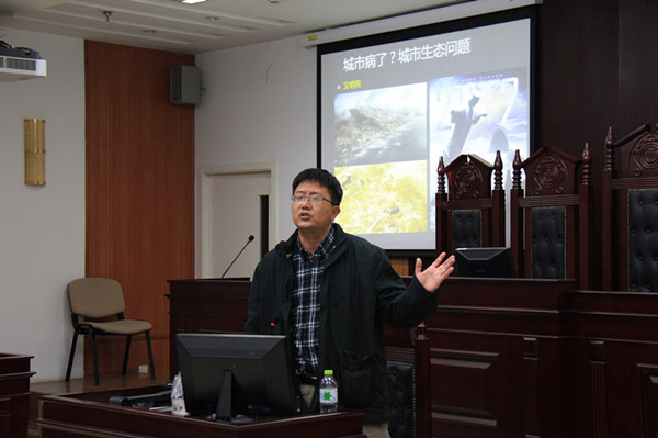 10月23日晚七点,跨学科论坛系列讲座之十二“生态城市规划与管理——一个人的城市”在中财大厦模拟法庭举行。此次讲座由北京师范大学环境公司教授、博士生导师陈彬教授主讲,由公司高秦伟教授主持。出席讲座的有李伟副教授、张小平副教授、郭维真博士,以及9428cn太阳集团古天乐的本科生和硕士生。讲座主要介绍生态城市的规划和管理方面的研究和经验。