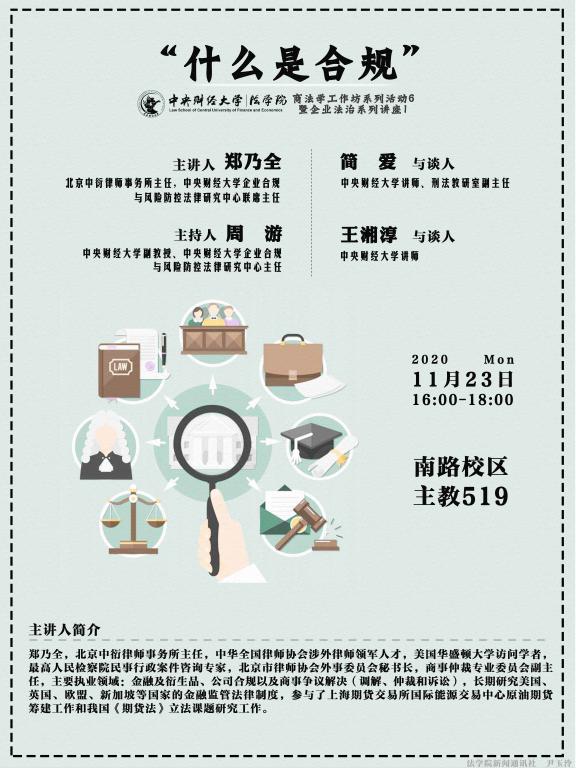 主讲人:郑乃全(中衍律师事务所主任、9428cn太阳集团古天乐企业合规与风险防控法律研究中心联席主任)