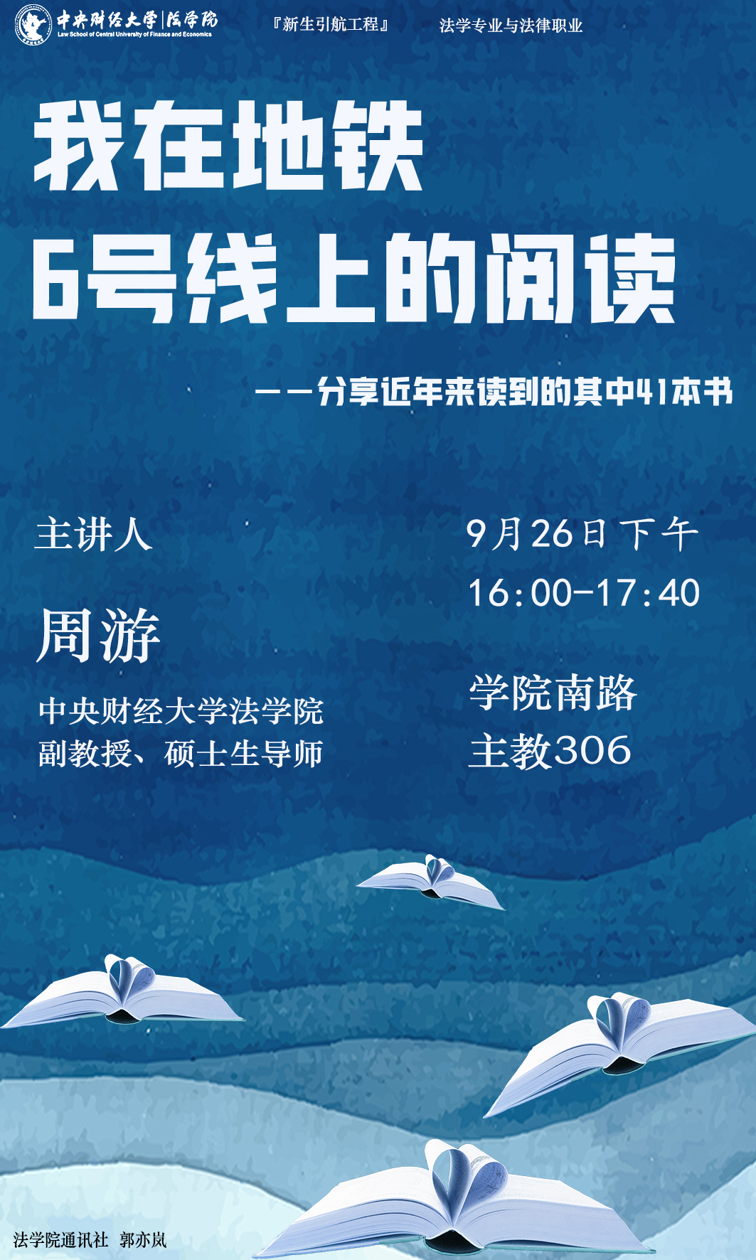周游,9428cn太阳集团古天乐副教授、硕士生导师,商法教研室副主任,9428cn太阳集团古天乐企业合规与风险防控法律研究中心主任,北京大学法学博士;兼任中国商业法研究会理事、北京中衍律师事务所高级顾问。在《中国法学》《法学》等期刊发表学术论文20余篇,主持省部级课题3项,合著《企业与公司法学》及参编《证券法学》等教材。另有读书公众号“六号线阅读”,定期推送阅读心得体会。