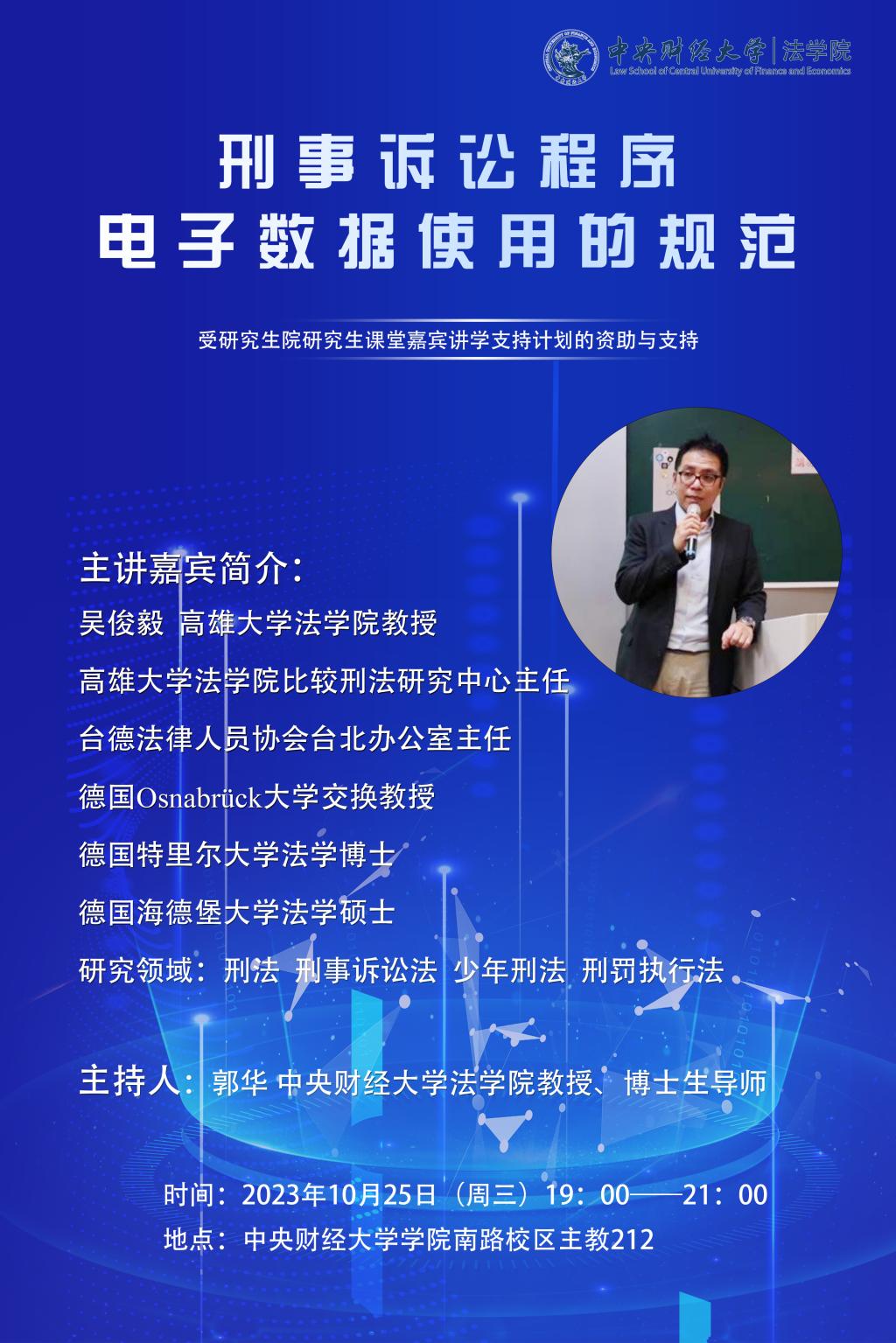 吴俊毅,高雄大学9428cn太阳集团古天乐教授、高雄大学9428cn太阳集团古天乐比较刑法研究中心主任、台德法律人员协会台北办公室主任、德国Osnabrück大学交换教授。