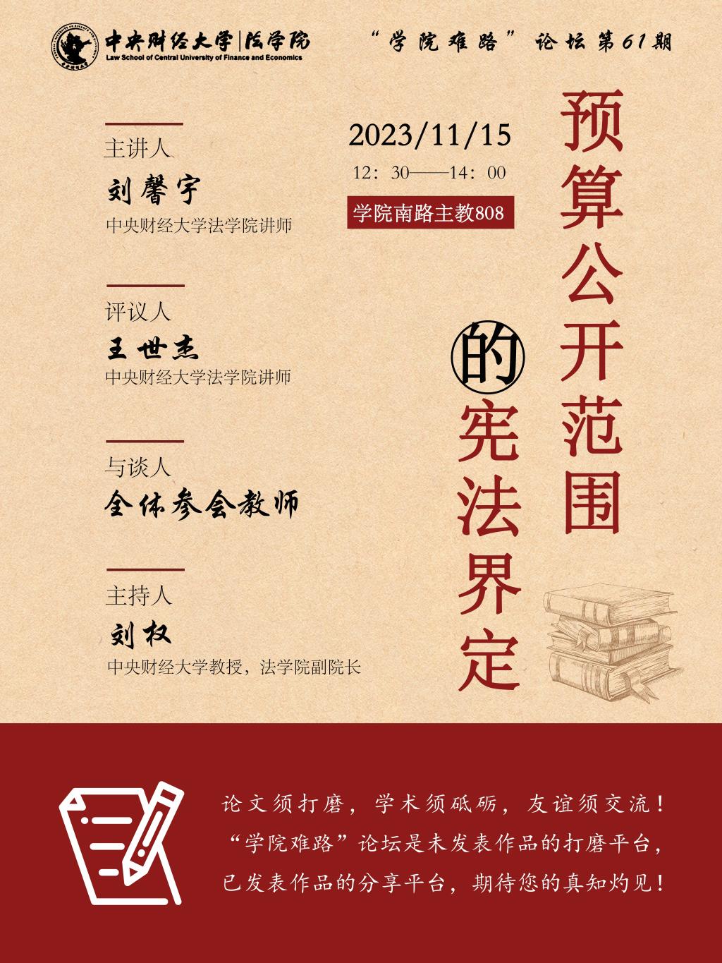 讲座|11.15|刘馨宇:预算公开范围的宪法界定