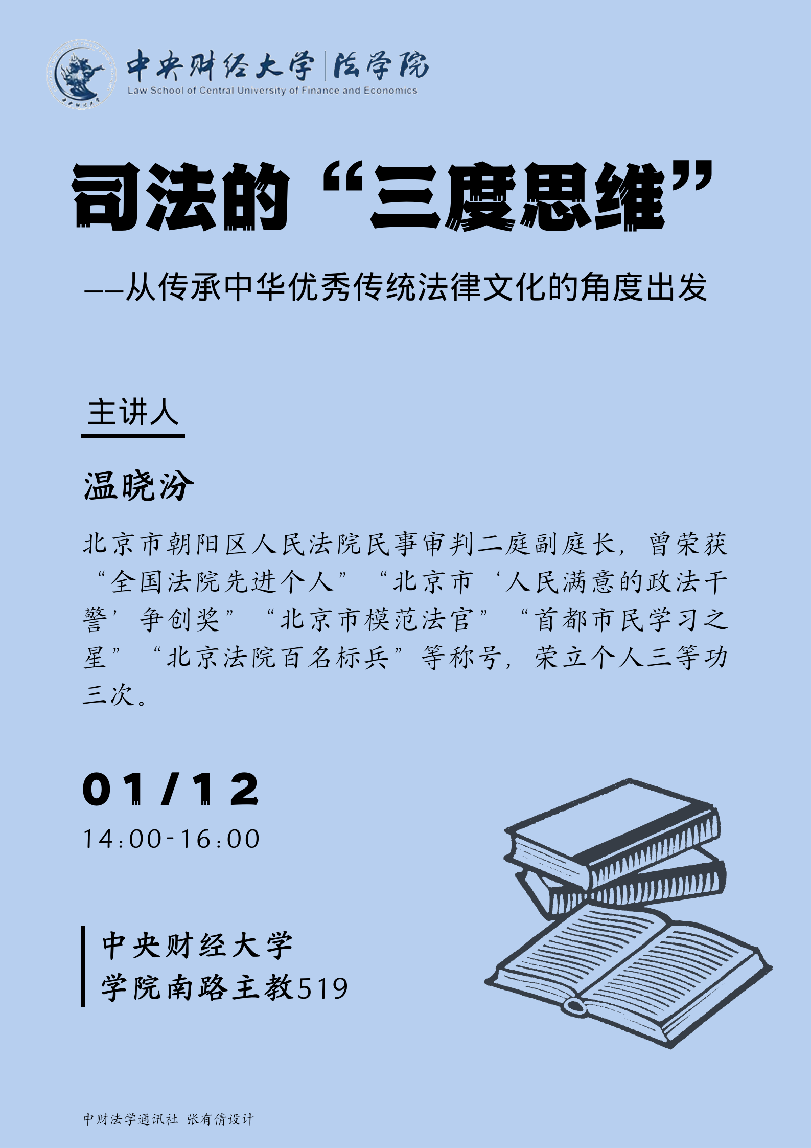 讲座|1.12|温晓汾:司法的“三度思维”——从传承中华优秀传统法律文化的角度出发