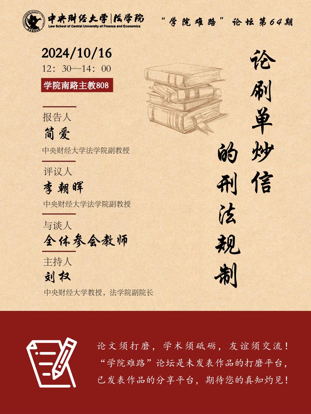 时 间:2024年10月16日(周三)12:30—14:00