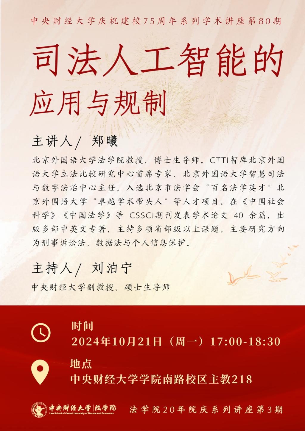 讲座|10.21|郑曦:司法人工智能的应用与规制