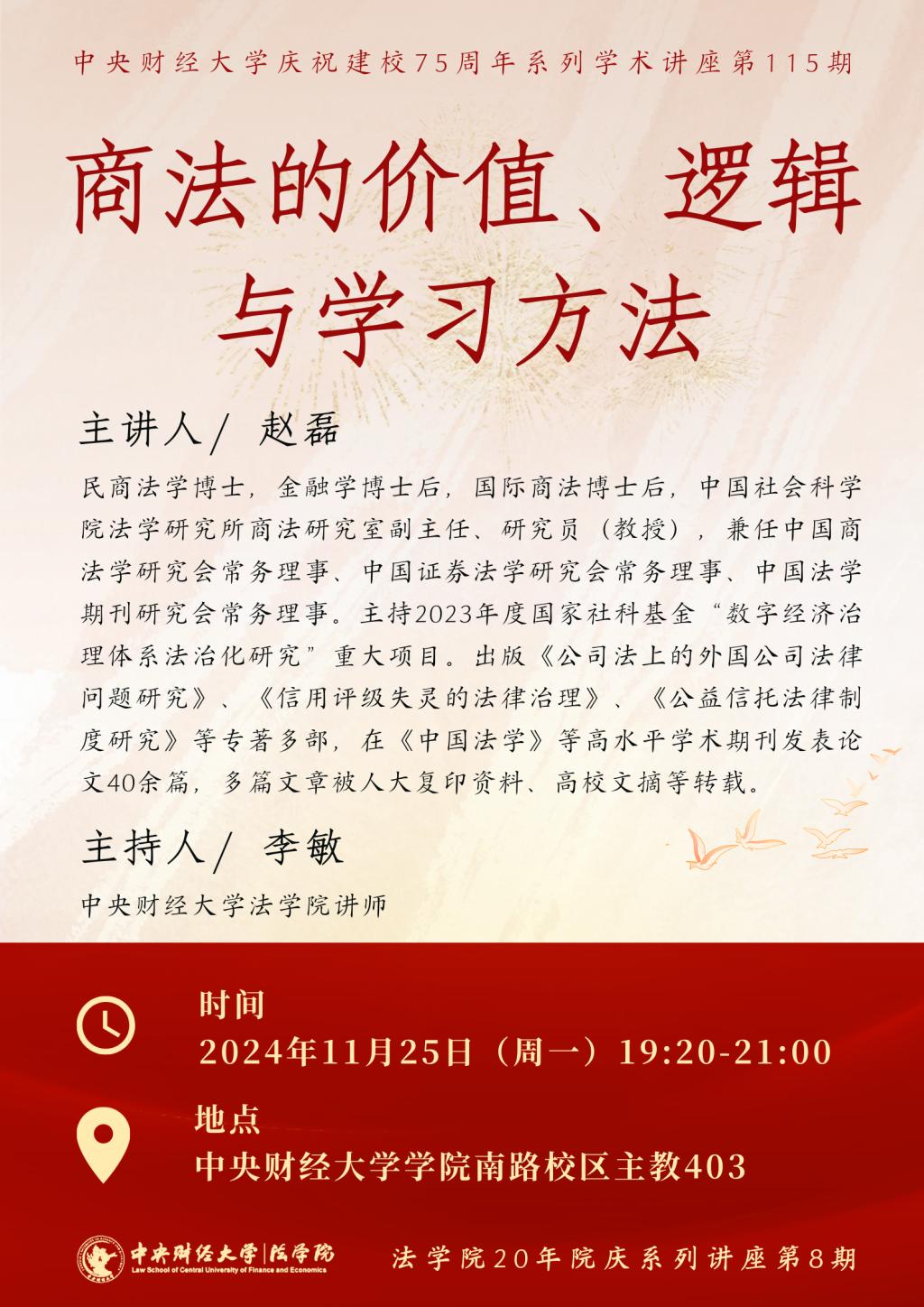 讲座|11.25|赵磊:商法的价值、逻辑与学习方法