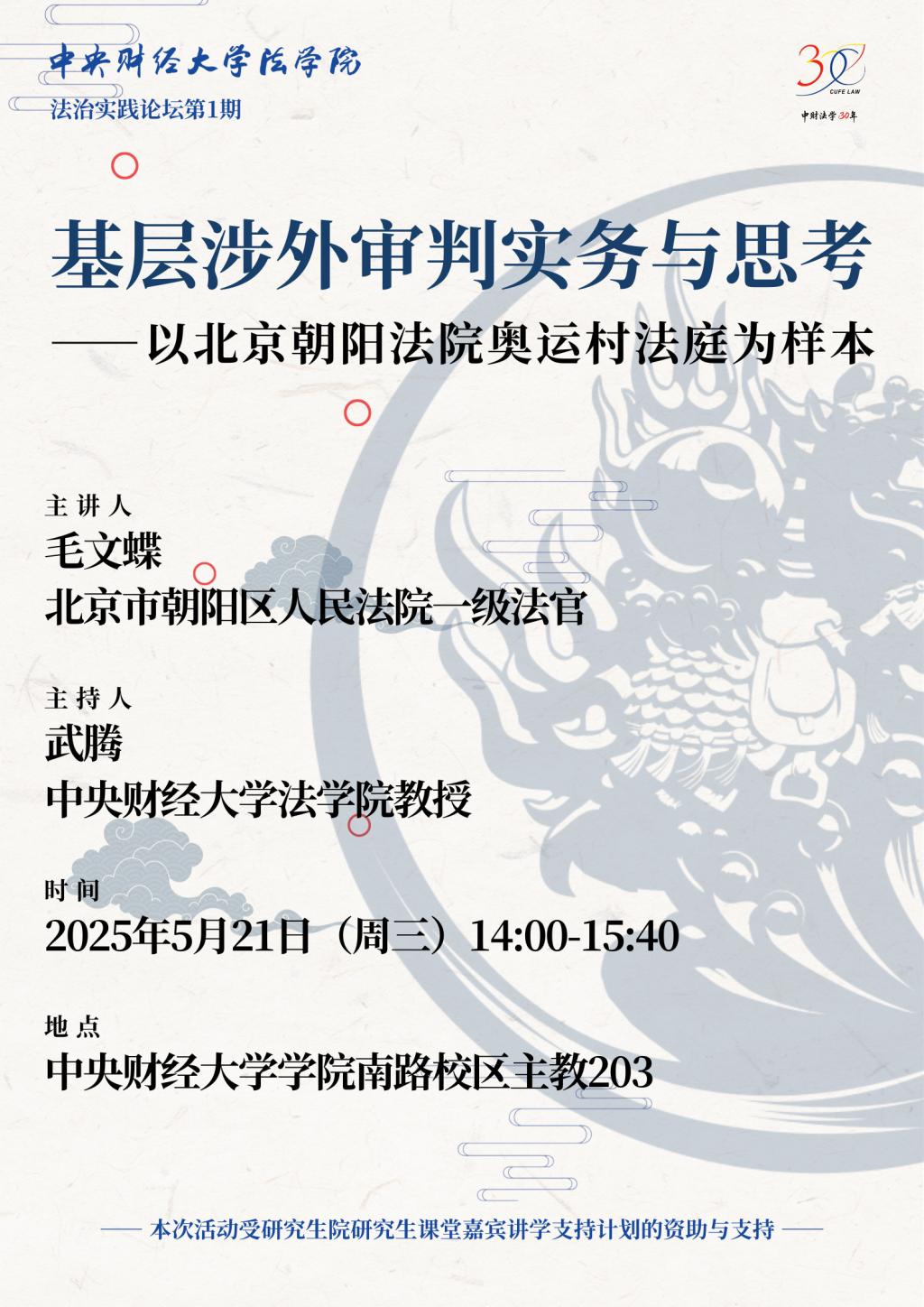 讲座|5.21|毛文蝶:基层涉外审判实务与思考——以北京朝阳​9428cn太阳集团古天乐奥运村法庭为样本