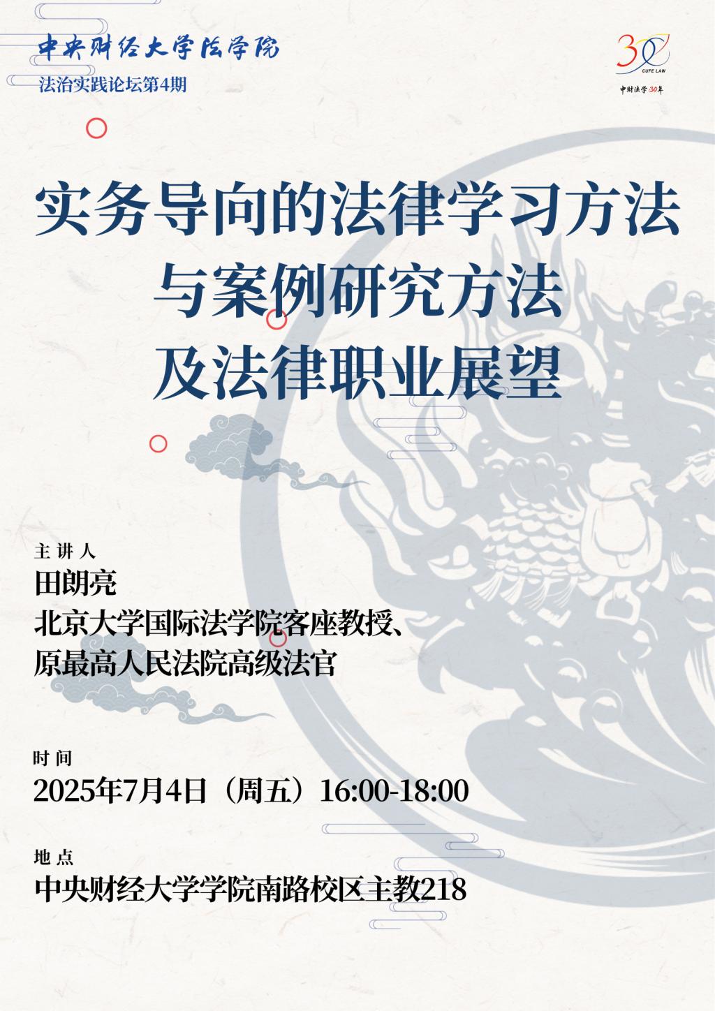 主 题:实务导向的法律学习方法与案例研究方法及法律职业展望