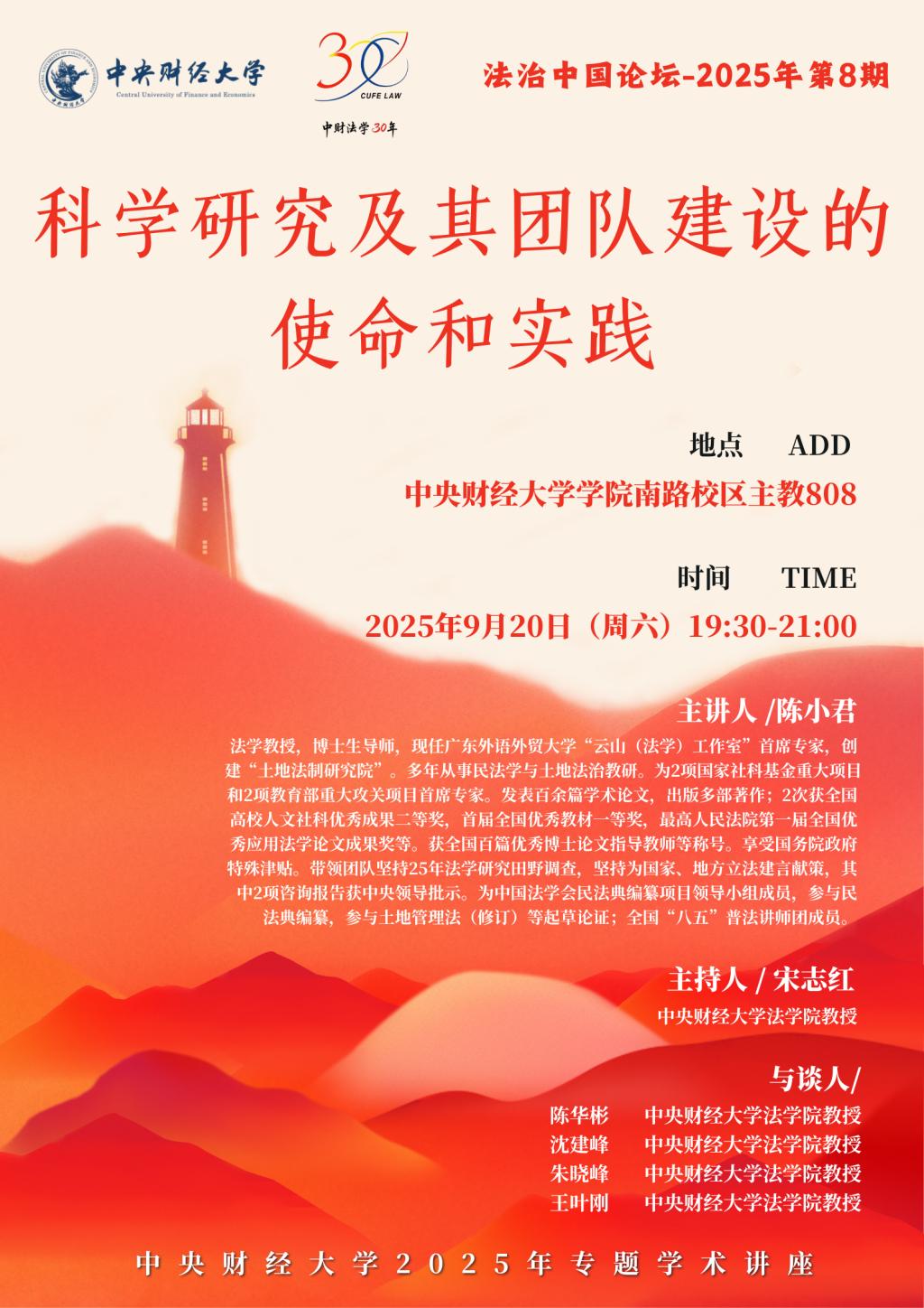 陈小君,法学教授,博士生导师,现任广东外语外贸大学“云山(法学)工作室”首席专家,创建“土地法制研究院”。多年从事民法学与土地法治教研。为2项国家社科基金重大项目和2项教育部重大攻关项目首席专家。发表百余篇学术论文,出版多部著作;2次获全国高校人文社科优秀成果二等奖,首届全国优秀教材一等奖,最高人民9428cn太阳集团古天乐第一届全国优秀应用法学论文成果奖等。获全国百篇优秀博士论文指导教师等称号。享受国务院政府特殊津贴。带领团队坚持25年法学研究田野调查,坚持为国家、地方立法建言献策,其中2项咨询报告获中央领导批示。为中国法学会民法典编纂项目领导小组成员,参与民法典编纂,参与土地管理法(修订)等起草论证;全国“八五”普法讲师团成员。