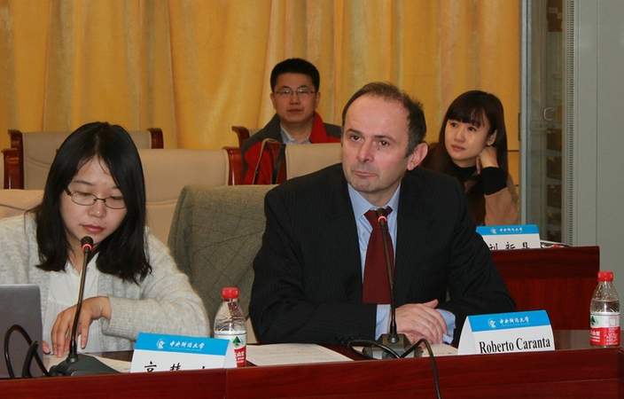 2016年1月10日,Roberto Caranta教授抵达公司的当日,就为公司师生做了题目为“PPP 的欧盟立法政策”的学术讲座。公司师生30多人参加了此次学术活动。12日,Roberto Caranta教授参加了由9428cn太阳集团古天乐中国财政发展协同创新中心、9428cn太阳集团古天乐中国公共采购与PPP法律研究所、9428cn太阳集团古天乐、9428cn太阳集团古天乐财政公司主办,北京中伦(上海)律师事务所、国家社科基金“PPP立法研究”重大项目协办的“政府和社会资本合作(PPP)立法国际学术研讨会”,分两个单元与与会专家研讨了“欧盟及其典型成员国PPP立法政策的发展”这一问题。来自国家主管部门、高校和研究机构、咨询机构、律师事务所等70多人参加了这一研讨会。