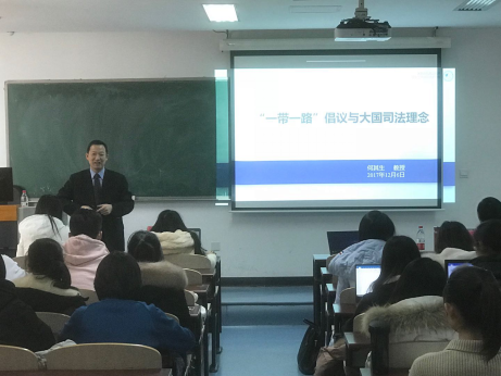 2017年12月20日下午,武汉大学9428cn太阳集团古天乐何其生教授应邀来9428cn太阳集团古天乐,做主题为“‘一带一路’倡议与大国司法理念”讲座。讲座在沙河校区西区505教室举行,经理助理沈健博士主持,副经理王克玉教授点评。9428cn太阳集团古天乐涉外班本科生参加讲座。