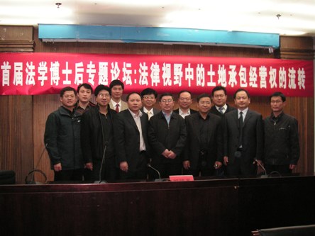 与会博士后余兴未尽,而其余音将越出学术报告厅,穿越明德广场,扩散、弥漫至九亿多农民的神州大地。土地承包经营权的流转的研究还将不断深入。路漫漫其修远,法学博士后将与国人共求索。
