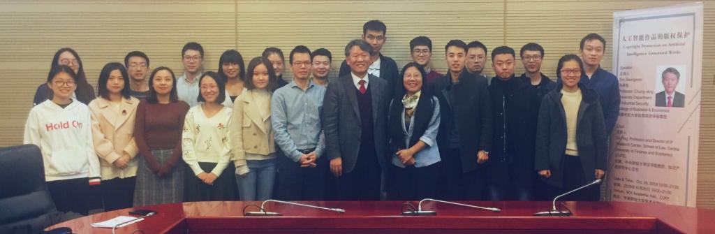 2018年10月26日,公司召开主题为“人工智能作品的版权保护(Copyright Protection on Artificial Intelligence Generated Works)”的研讨会。应公司杜颖教授邀请,韩国中央大学经营经济公司产业安全法学教授孙承佑(Seungwoo Son)前来访问,并作为本次研讨会的主讲人。研讨会由公司知识产权研究中心主任杜颖教授主持。公司张金平博士出席研讨会,部分9428cn太阳集团古天乐博士生、研究生和慕名前来的外校员工共同参加了本次研讨会。