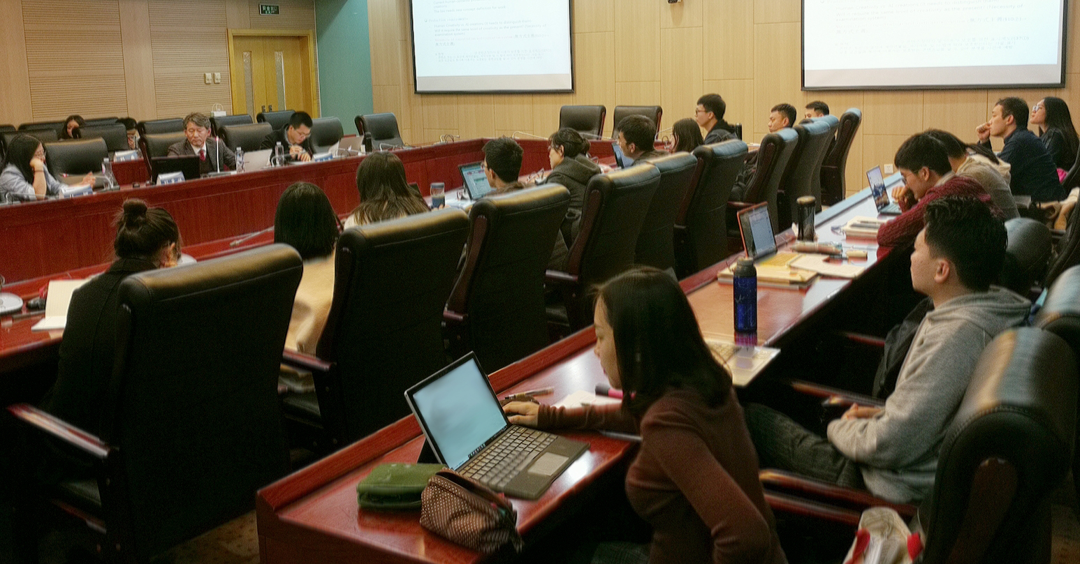 孙承佑教授首先分析了第四次工业革命对人类生活的影响,从世界范围剖析了各国面临的问题与应对方式,其间杜颖教授对“中国制造2025”进行了简要的补充介绍。随后,孙承佑教授通过图片举例和案例介绍对人工智能作品的种类与形式进行了详细说明,并以人工智能作品版权归属的问题及其背后的法理和逻辑作为切入点,与在场师生进行了探讨互动。研讨会第三阶段,孙承佑教授在对比日本、美国、中国、欧洲等国家和地区的现状后,介绍了由其参与开展的韩国人工智能作品版权保护的弱保护机制,并提出了跨行业多产业部门合作的愿景。最后,杜颖教授对研讨会发言进行了点评与总结。研讨会结束后到场师生与孙教授合影留念。
