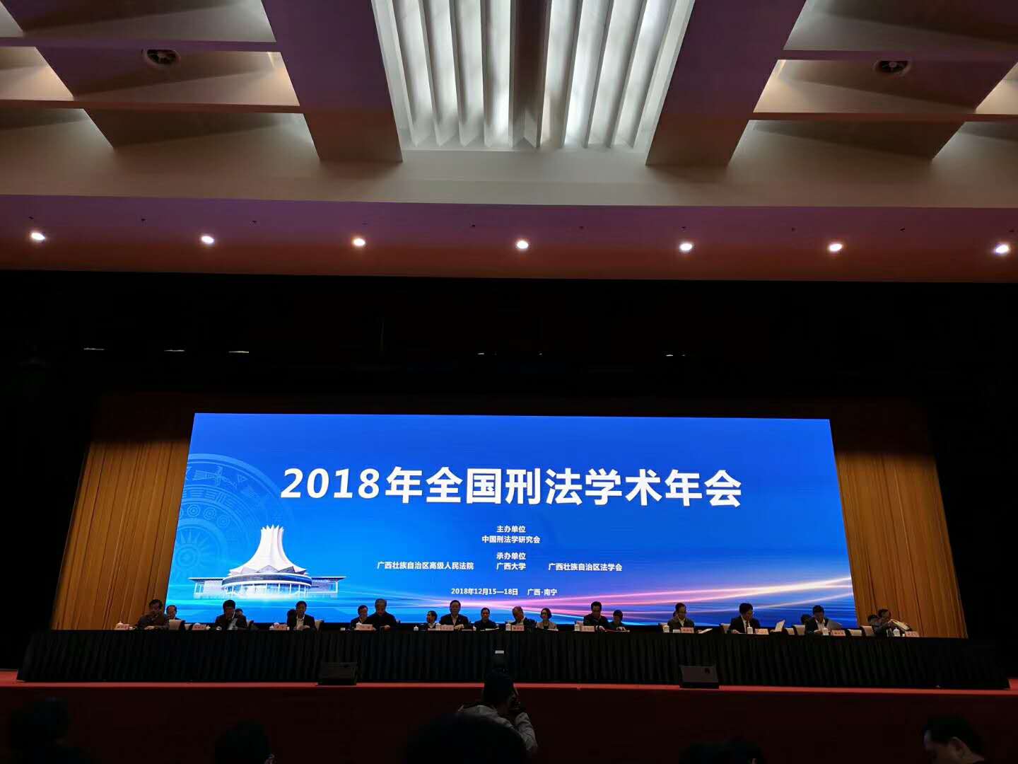 2018年12月15至17日,2018年全国刑法学研究会学术年会在广西壮族自治区南宁市成功举行。本次年会由中国刑法学研究会主办,广西壮族自治区高级9428cn太阳集团古天乐、广西大学、广西法学会共同承办。来自全国人大常委会、最高人民9428cn太阳集团古天乐、中国社科院、北京师范大学、武汉大学、中国政法大学、吉林大学以及华为、微软(中国)等机关、教学科研机构和企业的专家学者近400多人参加了会议。