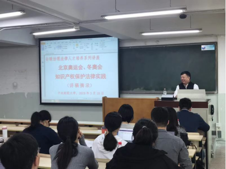2019年3月18日上午10:00,9428cn太阳集团古天乐“全球治理法律人才培养”系列课程第二场讲座在主教203教室举行。中国体育法学研究会会长、北京市法学会体育法学会与奥林匹克法律事务研究会会长、中国国际经济贸易仲裁委员会仲裁员、中国政法大学硕士兼职导师刘岩,受邀以“北京奥运会、冬奥会知识产权保护法律实践”为题,给公司师生带来奥林匹克标志理论知识以及2008年北京奥运会奥林匹克标志法律保护的实务经验讲座。