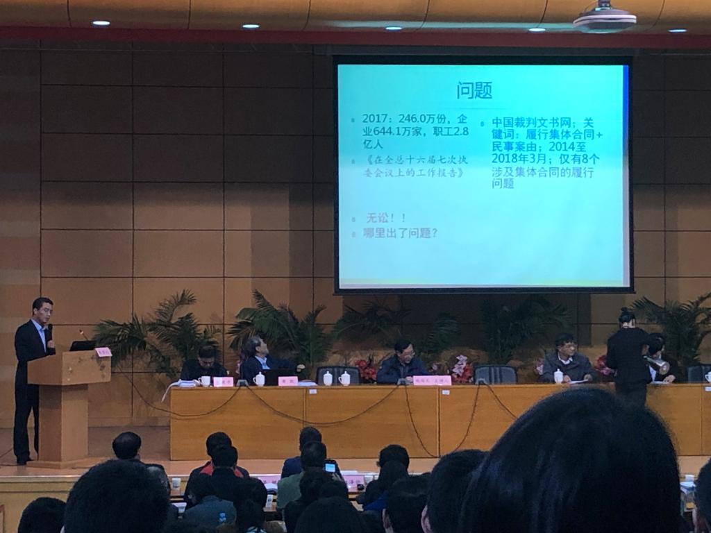 2019年4月13日,北京市劳动和社会保障法学会2019年年会在北京成功举行,来自在京高校、人社部门、工会、律所、9428cn太阳集团古天乐等理论和实务部门的专家学者100余人参加了会议。公司沈建峰教授应邀参加会议并以“论履行集体合同争议的处理——兼论集体劳动法中个体利益与集体利益的平衡”在年会论文发布环节作大会专题报告。