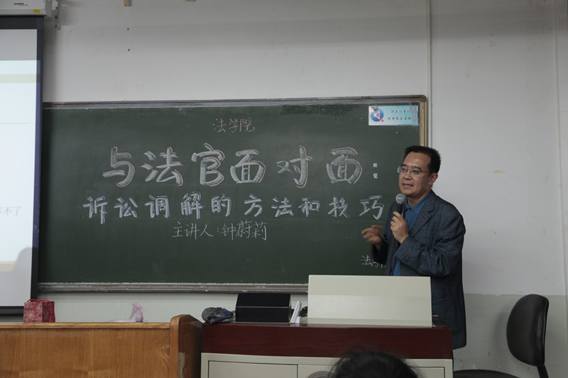 讲座开始前,尹飞经理首先为钟蔚莉副经理颁发了公司研究生兼职导师聘书并致辞。他指出,立德树人、德法兼修、明法笃行是习近平总书记对法治人才培养的重要要求。这就必然要求在法治人才培养中要切实坚持政治引领。钟蔚莉法官曾获全国优秀法官、中国法官十杰“金法槌奖”、全国三八红旗手、全国“巾帼建功”标兵、全国模范法官、全国先进工作者等一系列荣誉称号,我们不但要学习她的法治实践经验、提升实践能力,更要学习她的法治信仰、模范事迹,切实提升自己的政治素养和业务能力。结合自己挂职等从事法治实践的经验,尹飞指出,作为多元化纠纷解决方式之一,调解对于高效迅捷解决纠纷、实现案结事了具有重要意义。调解需要认真研判双方的利益诉求,立足公平正义尽力撮合双方实现和解。故而调解能力的培养对于财经领域法治人才的培养尤其是多元化纠纷解决能力的拓展意义重大。调解能力主要是经由法治实践而非课堂方能养成。钟蔚莉副经理在多年的审判实践中对于调解方法和技巧有深入的把握,希望大家从她的讲座中真正有所收获。