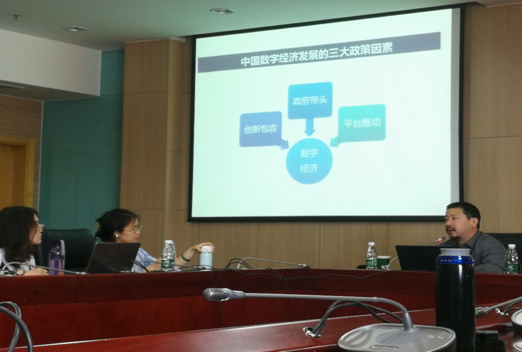 2019年6月3日上午,电子商务法律网创始人、网规研究中心主任阿拉木斯做客公司,在公司公司南路校区学术会堂604会议室,为公司师生带来一次题为“中国数字经济发展的政策因素分析”的讲学。公司经理助理郭维真副教授以及硕士研究生、博士研究生参加本次课堂讲学,杜颖教授主持。本次讲学受2019年公司研究生课堂嘉宾讲学支持计划资助。