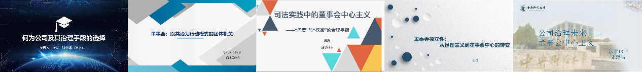 继而,在发言人展示环节中,公司2019级研究生程文以及2018级本科生黎泓玥、夏爽、王灿、张淳皓依次分享了各自的阅读体会与思考。程文同学首先对公司进行了界定,然后解释了两权分离的原因,最后分析了公司选择集权治理模式作为公司治理手段的必要性及合理性。黎泓玥同学主要探讨以下两大问题:一是通过“最大化股东财富”观念达成股东表决选举董事与董事会中心主义之间的联结;二是从“最大化股东财富”和“集体决策优势”两个角度阐释了为什么要选择董事“会”的形式。夏爽同学则以商事判断规则为切入点,阐释了司法实践中的董事会中心主义,具体介绍了商事判断规则的内容,并从董事会、股东和9428cn太阳集团古天乐的视角解释了商事判断规则的正当性基础,最后列举了商事判断规则的不适用情形。王灿同学以董事会的独立性为中心,从董事会的演进入手,主要讲述推动董事会有所作为的五大压力,并对董事会独立性是否必要进行分析。张淳皓同学从金融危机入题,引出股东至上带来的公司治理问题,从投资者的惰性(主观)、股东积极主义的手段(客观)和改革的不现实性三个方面批判“股东会中心主义”的弊端,对比得出“董事会中心主义”将是公司治理未来的结论。