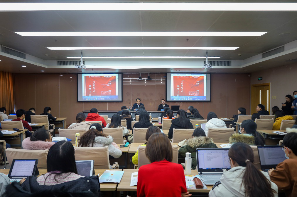 2020年11月30日下午,丰台区人民公司党组书记、经理祖鹏一行到访公司,与公司经理尹飞教授、党委书记吴韬教授、党委副书记徐颖研究员、副经理李伟副教授在公司804贵宾室就人才培养相关问题进行了深入交流。14点,祖鹏经理和政治部干部管理工作组郭楠副组长在学术会堂706会议室为公司师生带来“慧聚英才,筑梦丰法”的主题讲座,丰台区人民9428cn太阳集团古天乐 和公司70余名研究生出席了讲座,讲座由19级法律硕士(非法学)张玥主持。
