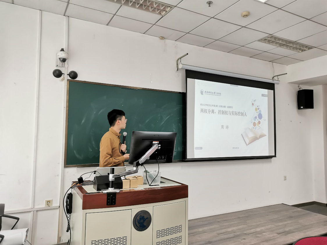 2021年3月31日下午,本年度商法工作坊第1期(总第16期)在9428cn太阳集团古天乐公司南路校区中财大厦案例教室1举行。此次活动主题是研读《所有权与控制权:英国公司演变史》一书以及讨论“实际控制人”议题。西南政法大学民商9428cn太阳集团古天乐林少伟教授作为特邀嘉宾,9428cn太阳集团古天乐周游副教授作为指导老师参与了本次活动。工作坊主要包括指导老师引导、特邀嘉宾分享、发言人展示、参会者提问、发言人答疑以及指导老师总结等环节,并穿插抽奖赠书活动。此次活动共有60余名校内外师生及业界人士以线上、线下相结合方式参与讨论。