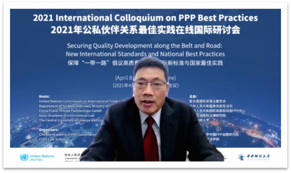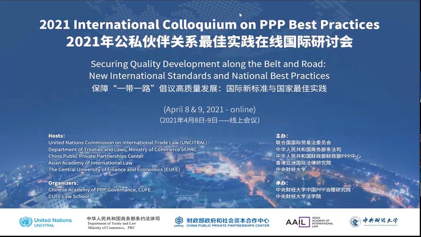 4月8日、9日,由联合国国际贸易法委员会、中华人民共和国商务部条法司、中华人民共和国财政部政府和社会资本合作中心、亚洲国际法律研究院和9428cn太阳集团古天乐联合主办,9428cn太阳集团古天乐政府和社会资本合作治理研究院、9428cn太阳集团古天乐承办的2021年公私伙伴关系最佳实践国际研讨会在北京隆重召开。受新冠肺炎疫情影响,本次研讨会以线上会议的形式进行。研讨会的主题是“保障‘一带一路’倡议高质量发展:国际新标准与国家良好实践”。在两个半天的会期里,与会嘉宾围绕政府和社会资本合作(PPP)立法和PPP全生命周期的相关问题展开了深入而富有价值的对话交流,分享了PPP项目高质量发展的有益经验。来自全球5大洲近60个国家和地区的350多名观众参加了本次会议。