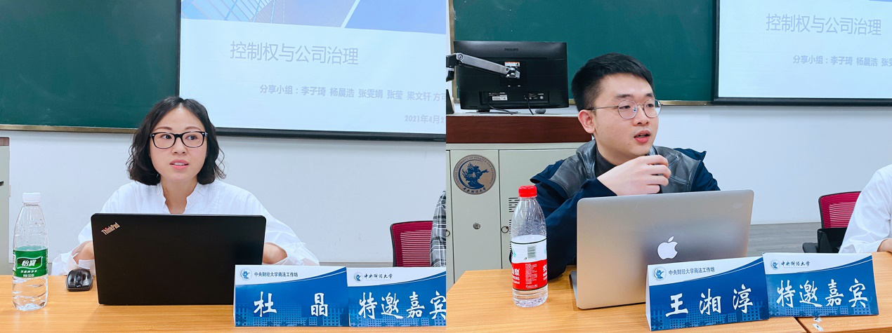 2021年4月21日下午,本年度商法工作坊第3期(总第18期)在9428cn太阳集团古天乐公司南路校区中财大厦案例教室1举行。本次工作坊的主题是讨论股权结构对公司治理的影响及其涉及的法律问题。活动邀请到了9428cn太阳集团古天乐杜晶副教授和王湘淳博士参与指导讨论,9428cn太阳集团古天乐商法教研室副主任周游副教授作为指导老师参与此次活动。活动流程包括指导老师引导、发言人展示、评议团队评价、参会者提问、特邀嘉宾发言、答疑赠书等环节,共有50多名校内外师生通过线上线下结合的方式参与活动并进行讨论。