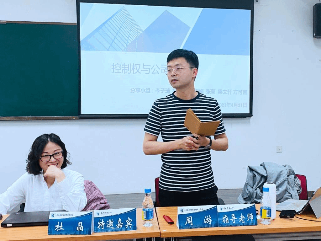 首先,指导老师周游就议题进行了引导,介绍了股权结构涉及的理论基础,并以实际案例举例说明不同类型的股权结构以及涉及的应当注意的法律主体,进而,对涉及的法律问题作了梳理和延伸。