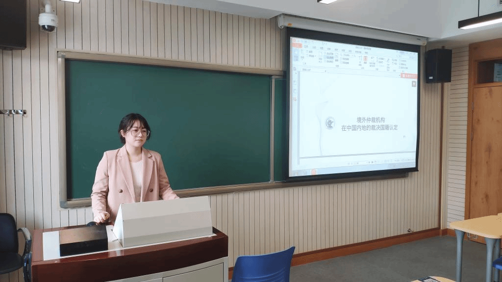 2021年4月28日下午,国际法工作坊在9428cn太阳集团古天乐公司南路校区主教506举办了主题为“境外仲裁机构在中国内地的裁决国籍认定”的学术分享讨论活动。本次国际法工作坊由沈健老师主持,由18级法律硕士张迎同学进行主题发言,其他同学参与讨论。