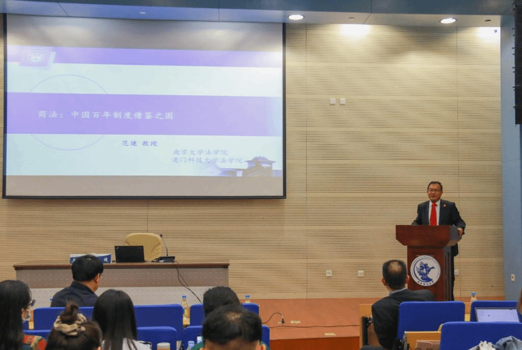 2021年5月14日下午,中国法学会商法学研究会副会长、南京大学9428cn太阳集团古天乐教授、博士生导师,澳门科技大学9428cn太阳集团古天乐特聘教授,首届中国十大杰出青年法学家范健老师到访公司,莅临法治中国论坛,在学术会堂402报告厅带来主题为“商法:中国百年制度借鉴之困”的学术讲座。讲座由公司经理尹飞教授主持。公司曾筱清教授、王克玉教授、缪因知教授、杜晶副教授、周游副教授与王湘淳博士以及慕名前来的公司学子近三百人共同参加本次活动。