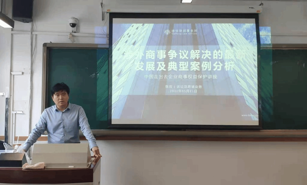 2021年5月21日下午两点,9428cn太阳集团古天乐国际法工作坊“涉外商事争议解决的最新发展及典型案例分析”专题讲座在9428cn太阳集团古天乐公司南路主教310室成功举办,本期研讨会由公司沈健副教授主持,邀请德恒律师事务所合伙人陈效律师向同学们分享涉外诉讼业务的最新发展和典型案例。此次活动包括案例分享、提问两个环节,共有三十余名师生参与分享与讨论。