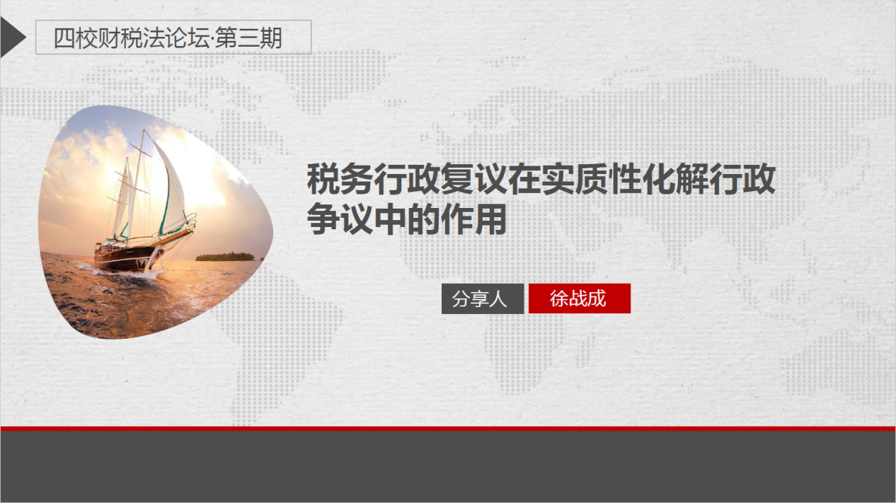 在主旨发言环节,徐战成认为,要发挥税务行政复议在实质性化解行政争议中的作用,不仅需要关注程序问题,更要注重实体问题,并结合行政争议中常见的滞后申报是否属于偷税、如何认定偷税的主观故意、股东借款推定股息规则的把握、计税依据中价外费用及其除外情形的举证责任、劳务收入完工进度法的适用等问题进行分享。