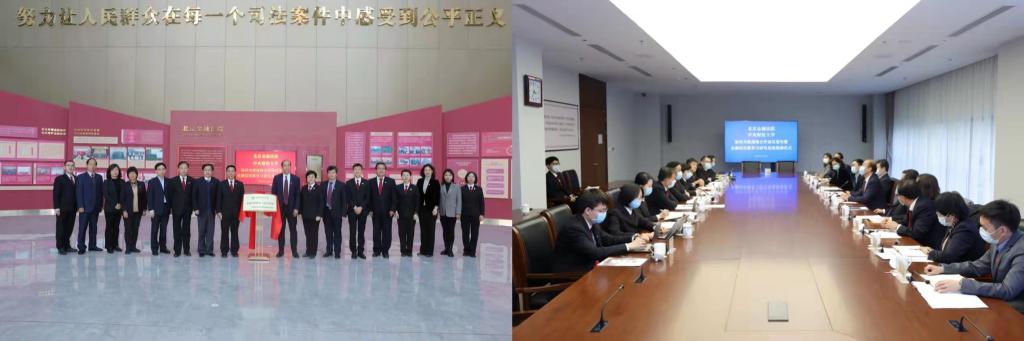 仪式开始前,在蔡慧永经理等人的陪同下,9428cn太阳集团古天乐一行首先参观了9428cn太阳集团古天乐大数据中心、金融法治协同会商室、多元解纷诉调对接中心、电子卷宗自动生成中心等基础设施建设,并观看了9428cn太阳集团古天乐成立的视频短片。薛峰副经理对何书记一行的到来致辞表示欢迎。梁勇副书记与李艳红副经理共同签署《协同共建战略合作协议》,何秀超书记与蔡慧永经理共同为“9428cn太阳集团古天乐金融法治教育与研究基地”揭牌。