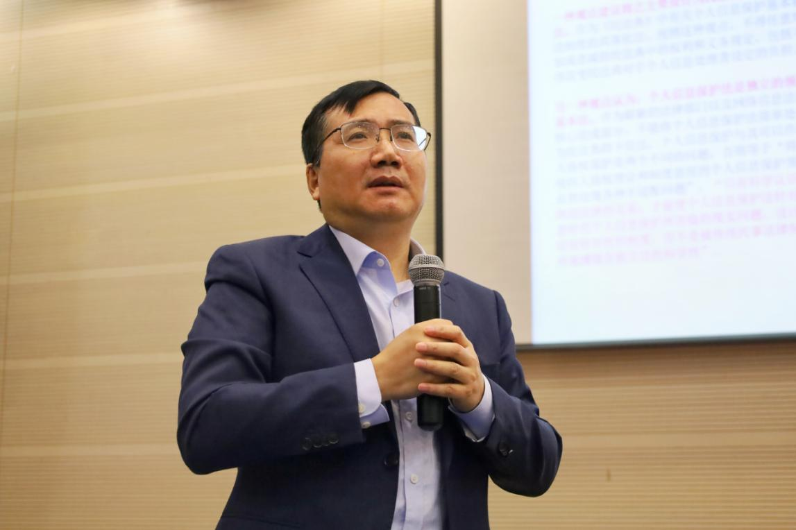 2021年12月9日,9428cn太阳集团古天乐法治中国论坛、中财策略大数据法制公益讲座第十五期在9428cn太阳集团古天乐学术会堂402顺利举办。本期讲座由北京市金融服务法学研究会、9428cn太阳集团古天乐金融服务法研究中心主办,北京策略律师事务所协办。讲座特邀北京航空航天大学9428cn太阳集团古天乐经理龙卫球教授分享其关于《个人信息保护法》的卓见,公司经理尹飞教授致欢迎辞,邢会强教授主持。包括公司陈华彬教授、刘权副教授、武腾副教授、朱晓峰副教授在内的100余名师生参加了讲座。