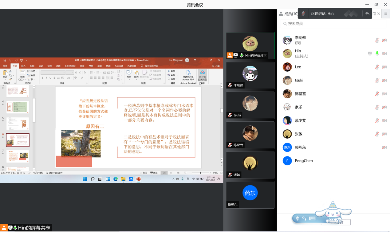 2021年12月9日中午,9428cn太阳集团古天乐财税法工作坊2021-2022学年第五期(总第28期)活动在公司南路主教学楼909和线上腾讯会议同步举行。本期活动的主题为“德日税法通则的比较与借鉴”,由法律硕士研究生刘茗轩主持,9428cn太阳集团古天乐本科生张驰、刘家骏,硕士研究生刘茗轩、李明修、姜恒、包少卿、叶俊材、沈聪分别就各自主题进行汇报与评议。华中科技大学9428cn太阳集团古天乐李貌老师、9428cn太阳集团古天乐郭维真老师,应邀出席。华中科技大学和9428cn太阳集团古天乐两校研究生、本科生三十余人通过线上会议和线下会议的方式参加本次活动。