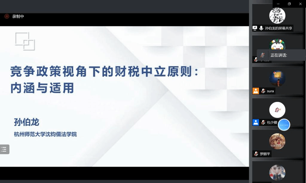 2022年3月23日,9428cn太阳集团古天乐财税法工作坊第30期通过直播平台以线上讲座的形式举行,主讲人为杭州师范大学沈钧儒9428cn太阳集团古天乐孙伯龙副教授,主题为“竞争政策视角下的财税中立原则:内涵与适用”。本次讲座由工作坊指导老师郭维真副教授主持,公司部分2021级和2020级硕士研究生参加了此次讲座。
