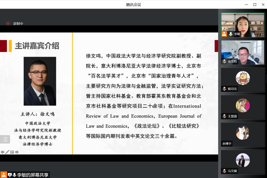 徐文鸣老师是中国政法大学法与经济学研究院副教授,意大利博洛尼亚大学法律经济学博士,擅长运用实证研究方法研究金融监管问题,在International Review of Law and Economics,European Journal of Law and Economics,《政法论坛》、《比较法研究》等国内外核心期刊发表中英文论文30余篇。