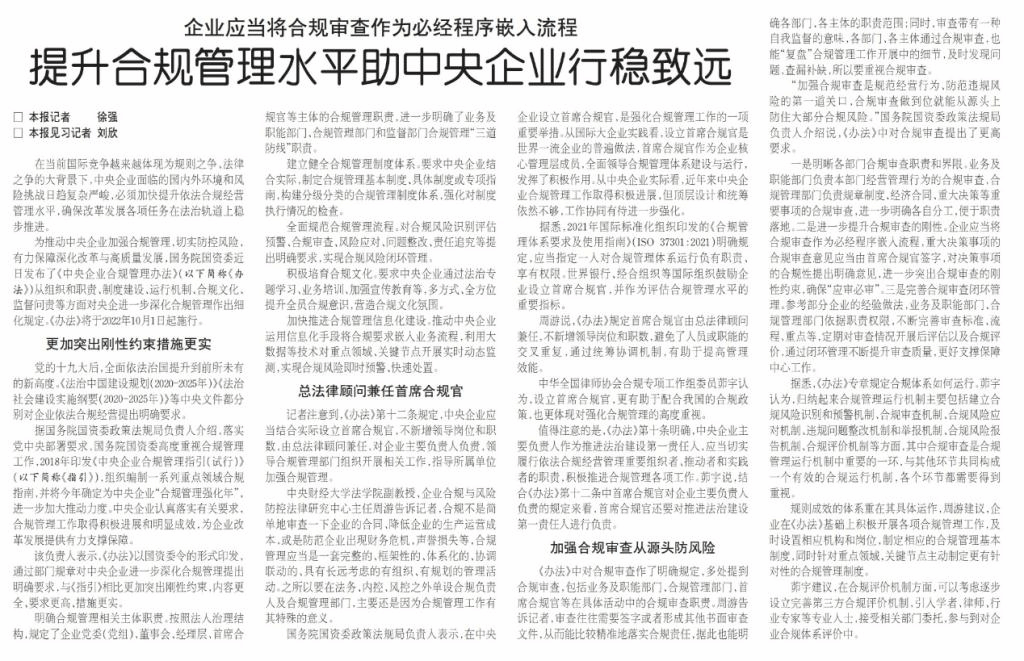提升合规管理水平助中央企业行稳致远