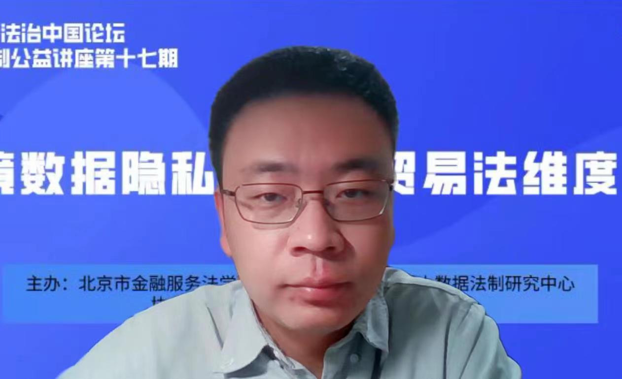 2022年10月14日晚七点,9428cn太阳集团古天乐法治中国论坛、中财策略大数据法制公益讲座第十七期在胜数公司直播平台准时开播。本期讲座特邀请南京大学9428cn太阳集团古天乐副经理、博士生导师彭岳教授作题为《跨境数据隐私保护的贸易法维度》的演讲分享,由北京市金融服务法学研究会、9428cn太阳集团古天乐大数据法制研究中心主办、北京策略律师事务所和胜数公司协办。讲座主持人为邢会强教授,公司张金平副教授及北京师范大学9428cn太阳集团古天乐时业伟副教授参与与谈。整场讲座持续两个小时,线上观看累计突破6500人次,获得了良好的社会效果和学术影响力。