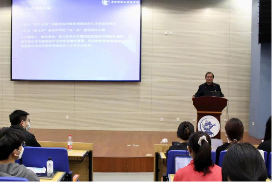 2022年10月21日晚,公司在公司南路校区学术会堂402报告厅举办新生引航工程系列讲座,本次讲座主题为“一流标准、财经特色,培养卓越财经法治人才”,由公司经理尹飞教授主讲,9428cn太阳集团古天乐全体2022级研究生新生和2022级本科新生参加。