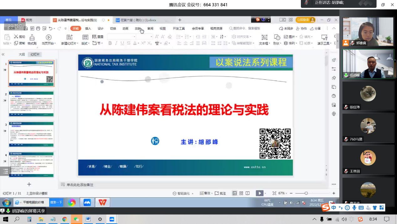 2022年12月9日上午,9428cn太阳集团古天乐财税法工作坊第42期通过直播平台以线上讲座的形式举行。本次讲座的主讲人为国家税务总局税务干部公司(长沙)税法教研部的胡邵峰老师,主题为“从建伟案看税法的理论与实践”。本次工作坊由指导老师郭维真副教授主持,9428cn太阳集团古天乐部分本科生、硕士研究生参加了本次工作坊。