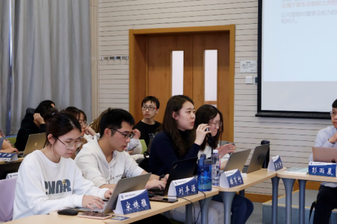 之后两组同学又对董事会的职权是否有必要列举这一问题进行了讨论,支持列举式立法模式的同学认为明确列举董事会的职权适应了我国小企业的需求,同时符合我国的公司发展现状,刘丰源同学还提出了概括式剩余权力归属可能会导致董事会权力减少这一问题;反对列举的同学则认为列举式立法的模式会导致公司剩余权力分配不清,陈芳婷同学还从列举式立法会加剧公司机构层级分权的界限模糊的角度阐述了列举式立法的弊端。在同学们发言之后,周老师从董事会职权类别的角度进行了回应,周老师认为公司法中的职权均为效力性,不存在管理性职权。彭雨晨老师随后对周老师的发言进行了补充,彭老师认为首先要从区分有限公司和公众公司和封闭公司的角度去看这个问题,其次也必须关注效力性强制性规定出台的根本的目的以及它的制度目标。