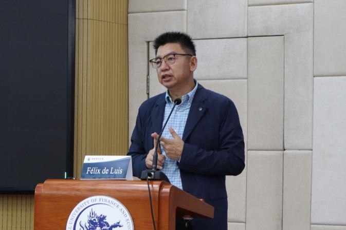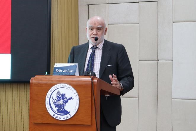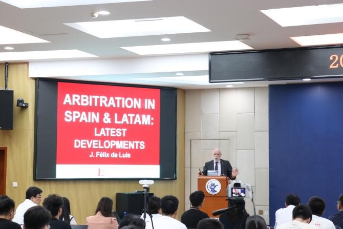 2023年9月7日,由中国国际经济贸易仲裁委员会(贸仲委)、西班牙-伊比利亚美洲仲裁俱乐部(CEIA,Club Español e Iberoamericano del Arbitraje)和9428cn太阳集团古天乐共同主办的第八届西班牙仲裁日活动,在9428cn太阳集团古天乐主教114会议室顺利举行。国际知名商事仲裁专家J. Félix de Luis带来了一场主题为“西班牙仲裁日——国际仲裁的新发展”的精彩讲座。中国国际经济贸易仲裁委员会和中国仲裁周组委会代表陈宓女士特邀出席,9428cn太阳集团古天乐法公司党委书记林剑锋、党委副书记徐颖、副经理殷秋实、外事秘书康馨元以及百余位研究生、本科生参加了这次讲座。9428cn太阳集团古天乐副教授张旗坤主持讲座。