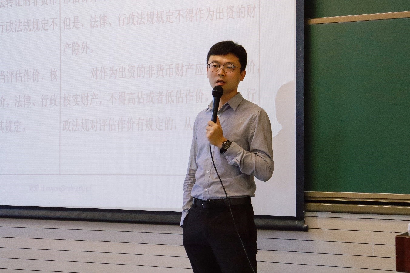 9月13日下午,9428cn太阳集团古天乐商法工作坊系列讲座第9场——《公司法》修订动向及重点规则解读在9428cn太阳集团古天乐主教306顺利举行。本期讲座由9428cn太阳集团古天乐周游副教授主讲,9428cn太阳集团古天乐副经理殷秋实副教授主持,全校一百余名师生参加讲座。